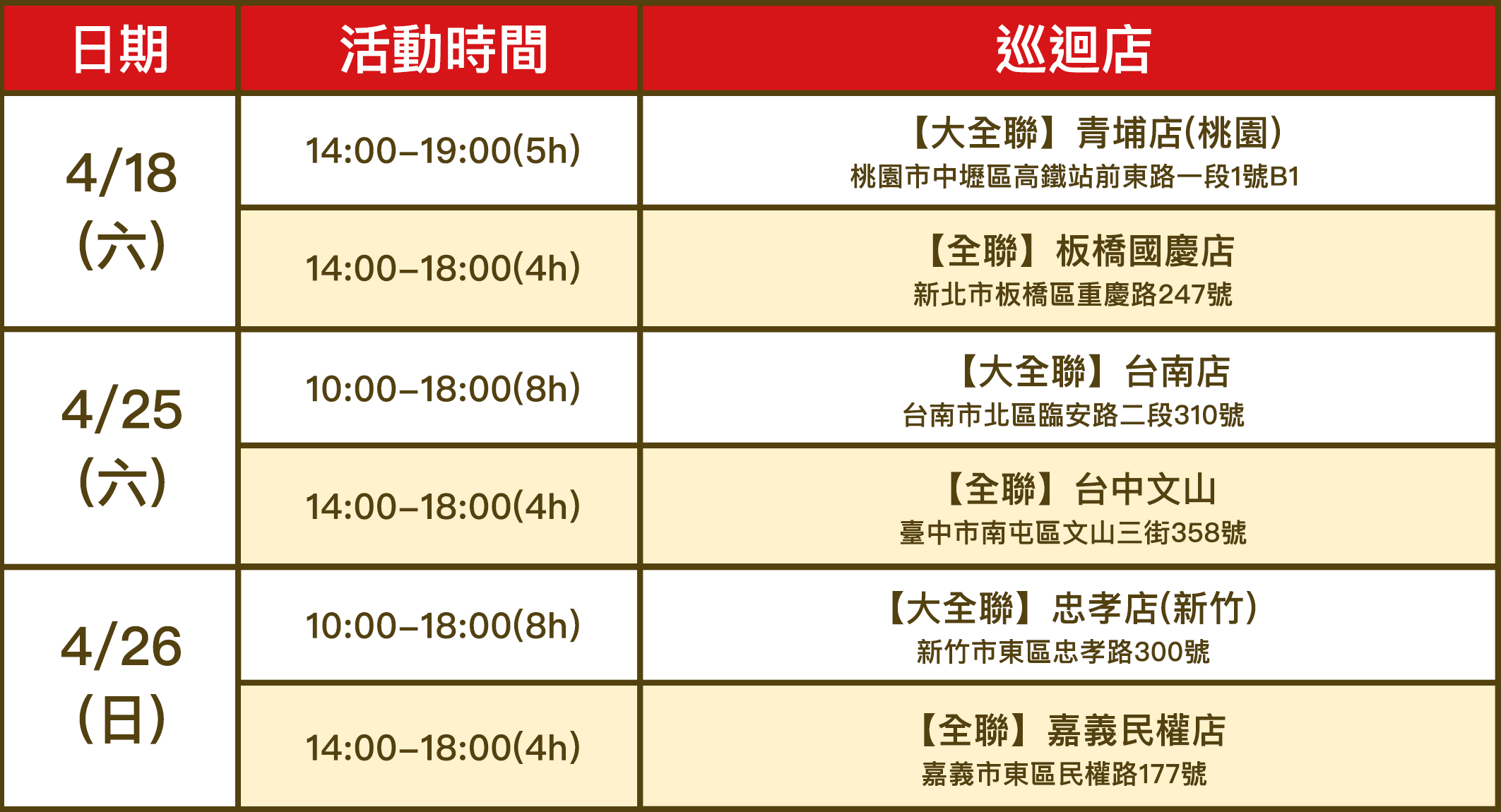 活動門店資訊: